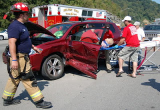 Belfry Fire and EMS responds to an accident. (Rachel Dove-Baldwin, Williamson Daily News) |